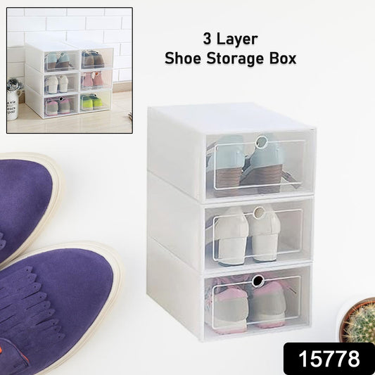 3 Layer Plastic Shoes Storage Box, Stackable Shoe Storage (1 Set / 3 Layer Set)