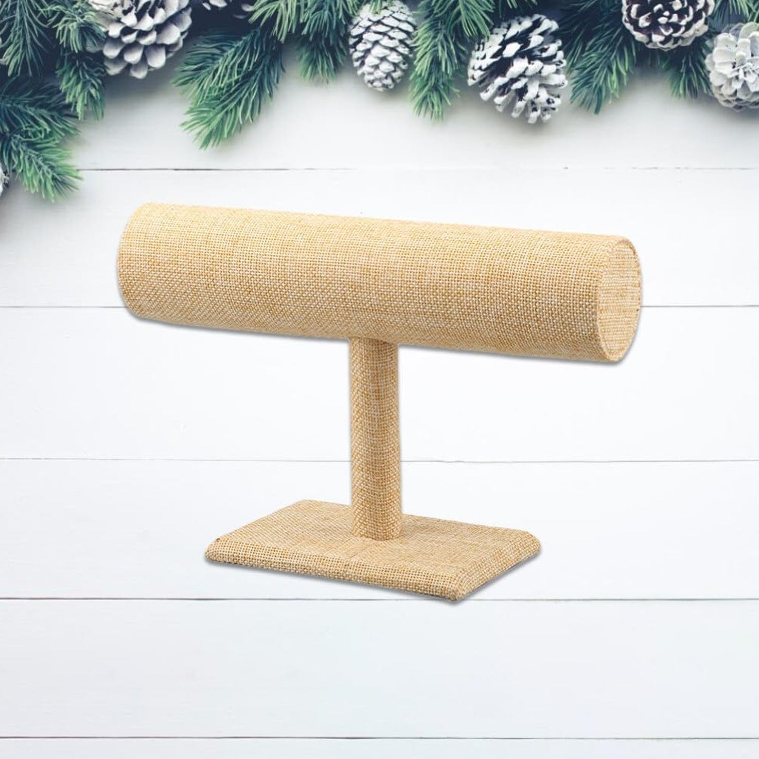 - [Jewelry Stand with Classic Colors and Styles] The surface of the bracelet holder stand is covered with bright beige linen, The natural texture and color is suitable for jewelry displays and shows. The bracelet stand is durable and fashionable, easy for accessories display. Jewelry stands and displays with classic colors, lightweight and robust design is a good choice for boutique display, craft show display, vendor event and personal use.