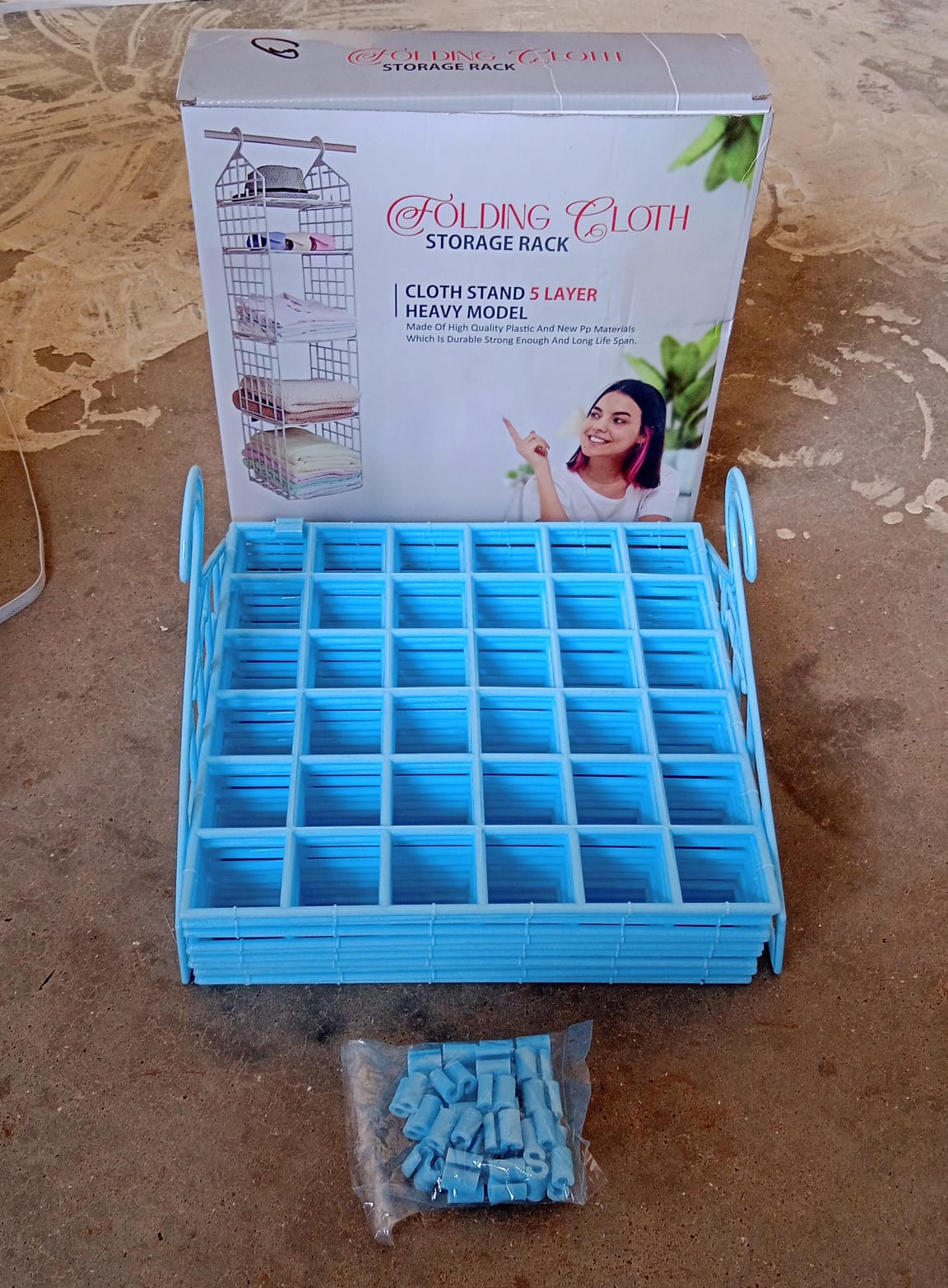 - γFOLDABLE COLLAPSIBLE RACKγThis 5 layer cloth hanging rack is designed in such a way that it can be easily folded and can be kept in very less space in your cupboard. This cloth rack is stackable and can be kept in very small space.